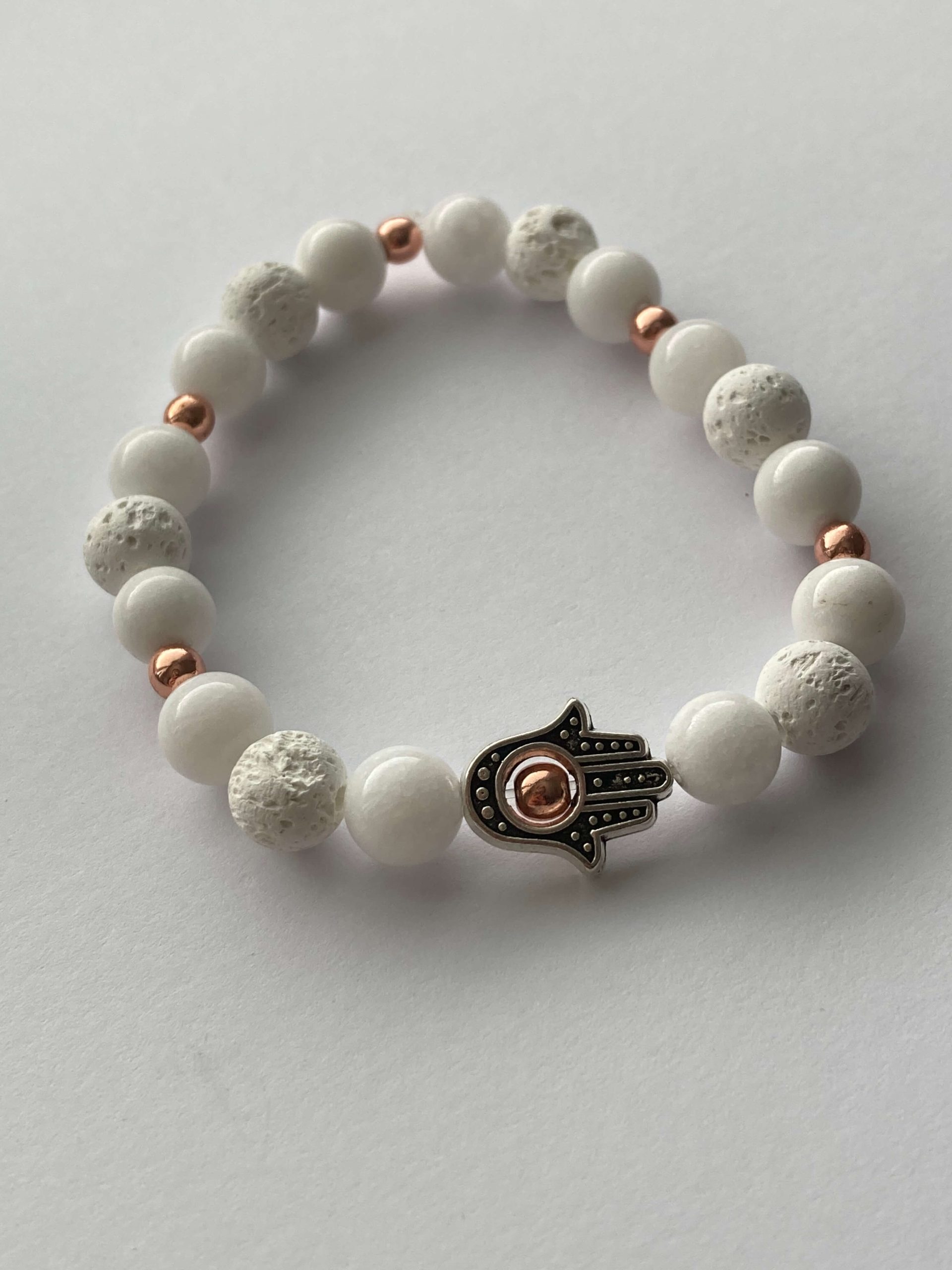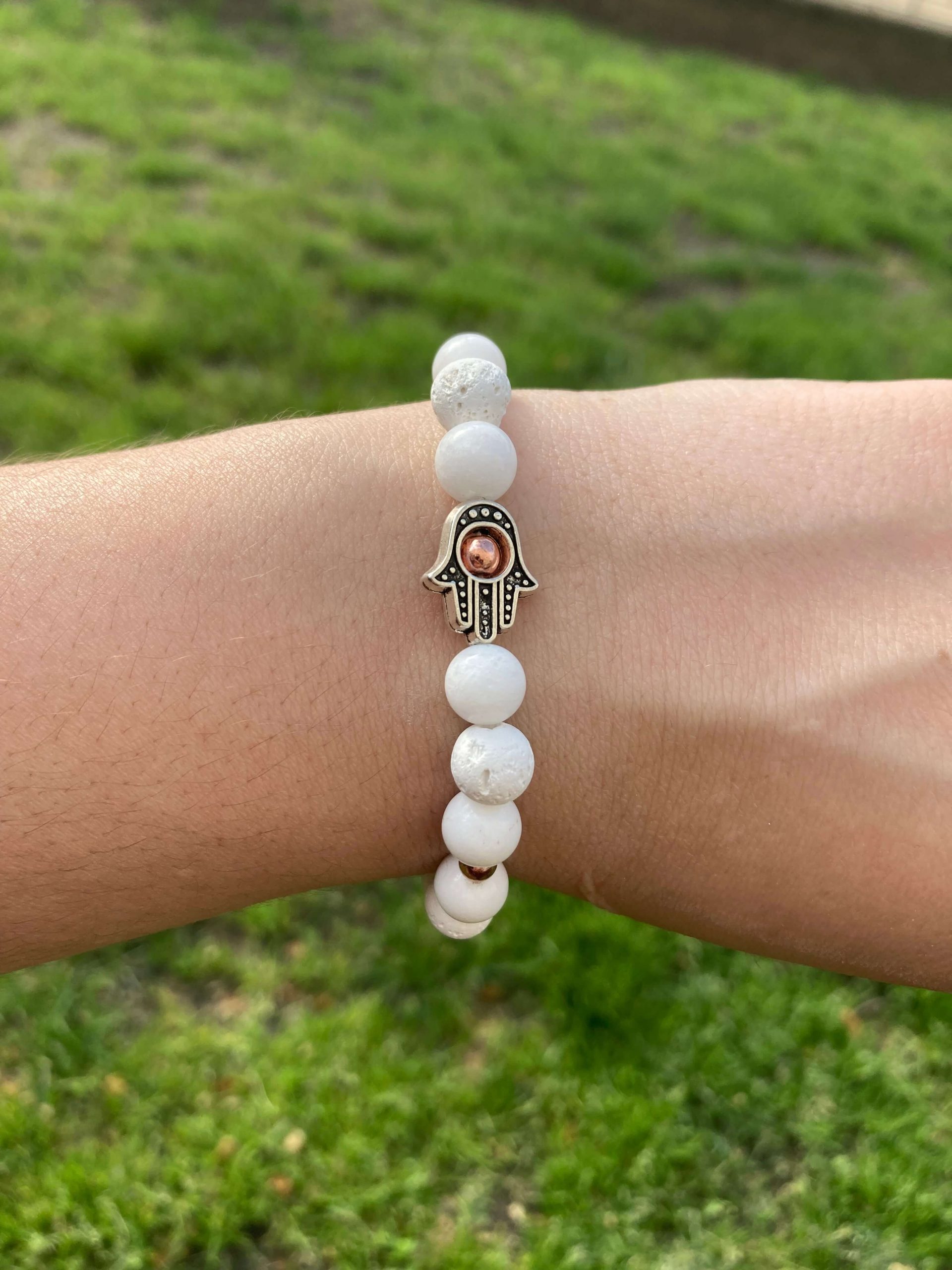 Fehér lávakő hamsa kézzel