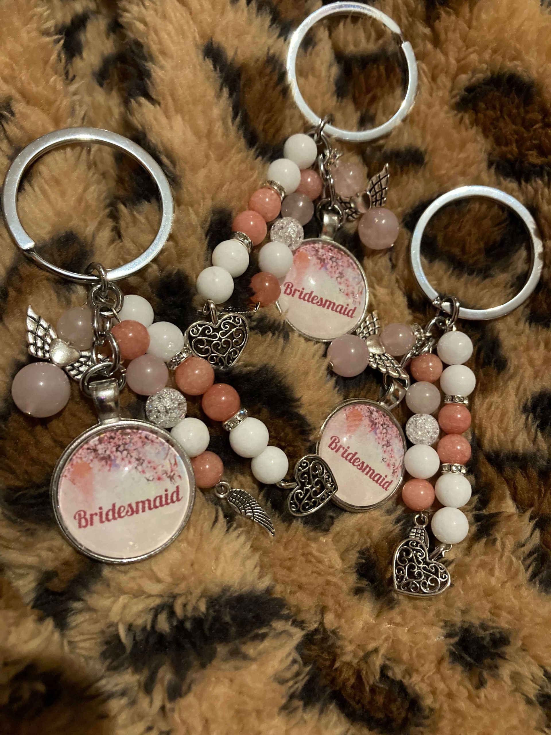Díszített koszorúslány kulcstartó, módosítható színben és felirattal.