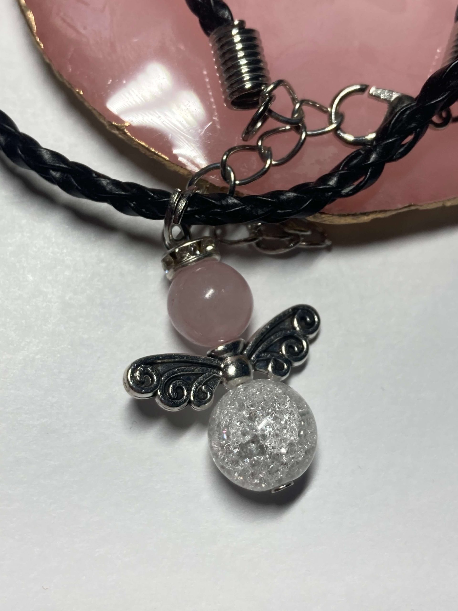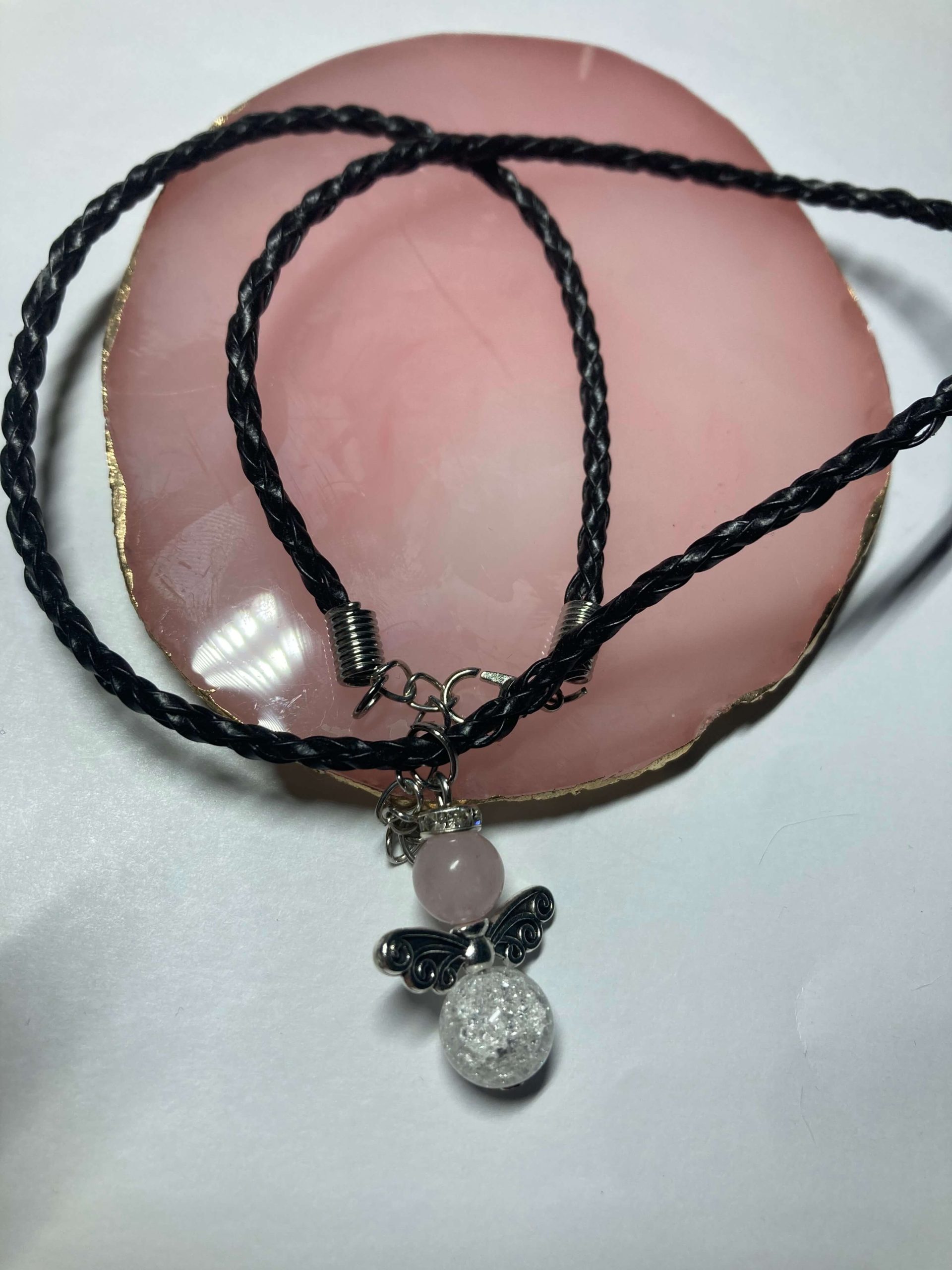 Ásvány angyalka medállal ellátott bőr alapú nyaklánc