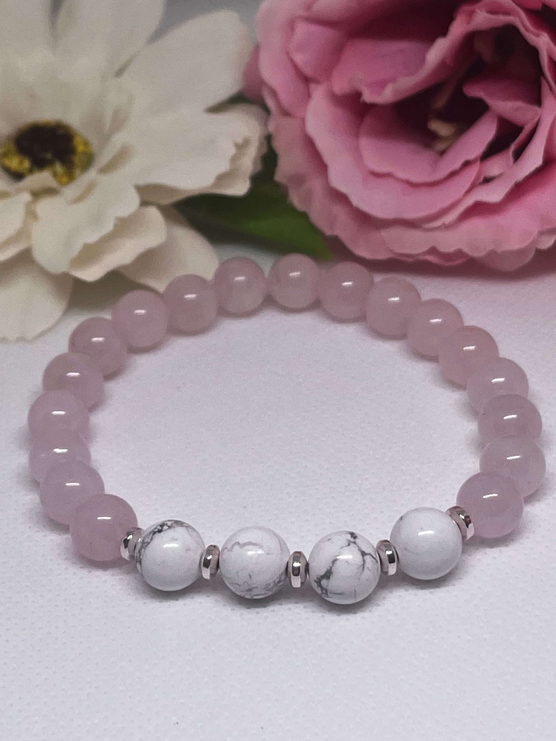 Rózsakvarc-howlit karkötő