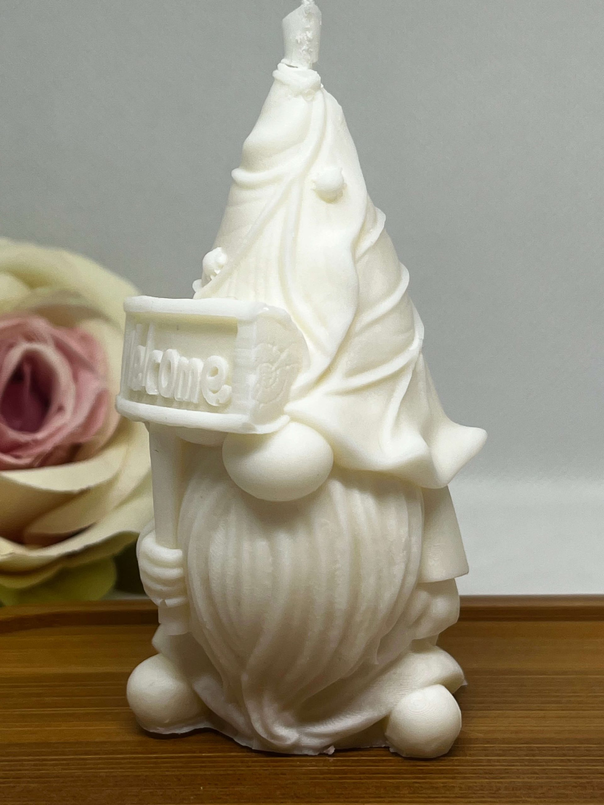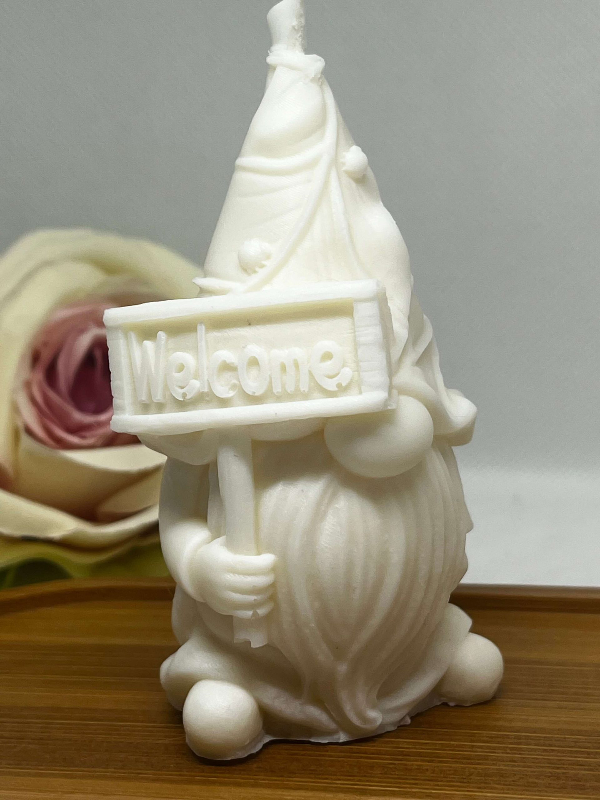 Törpe Welcome táblával gyertya